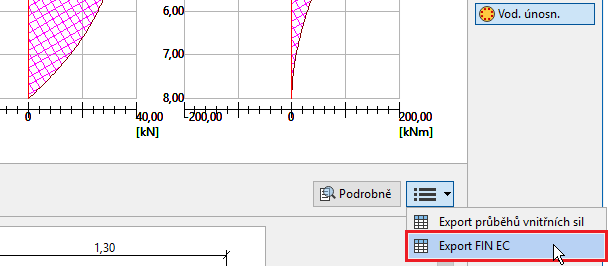 • Pilota - v části "Vodorovná únosnost" je možné vyexportovat geometrii piloty včetně průběhů ohybového momentu a smykové síly. Pilota se načte do programů "Fin EC" jako úloha typu "Dílec"
