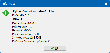 Po načtení dat ze schránky program zobrazí shrnutí importu se základními charakteristikami importovaného prvku. Program při importu kontroluje, zda jsou charakteristiky v souladu s výpočtovými metodami programu. V opačném případě se daná charakteristika nepředá a je nutné ji zadat po importu znovu. Nejčastější příčiny jsou:
