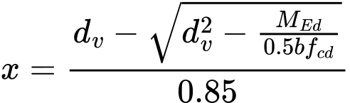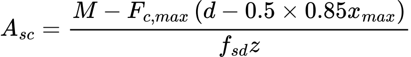 Providing the location of the neutral axis is greater than the allowable one (x > xmax), the program determines the areas of both compressive Asc and tensile Ast reinforcement from the expressions: