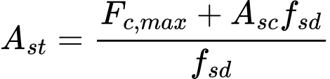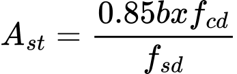 Providing the location of the neutral axis is less than the allowable one (x < xmax), the program determines the area of tensile reinforcement Ast from the expression: