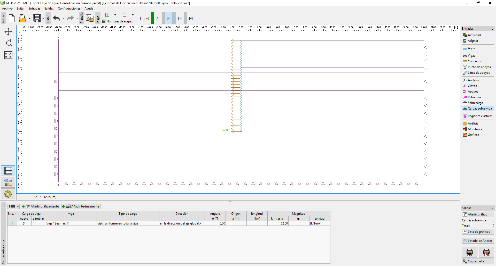 Todos los parámetros de la carga de entrada pueden ser modificados en la etapa de construcción, en la cual la carga fue introducida. En las etapas siguientes solo se puede modificar su magnitud (opción: "Ajustar magnitud").
